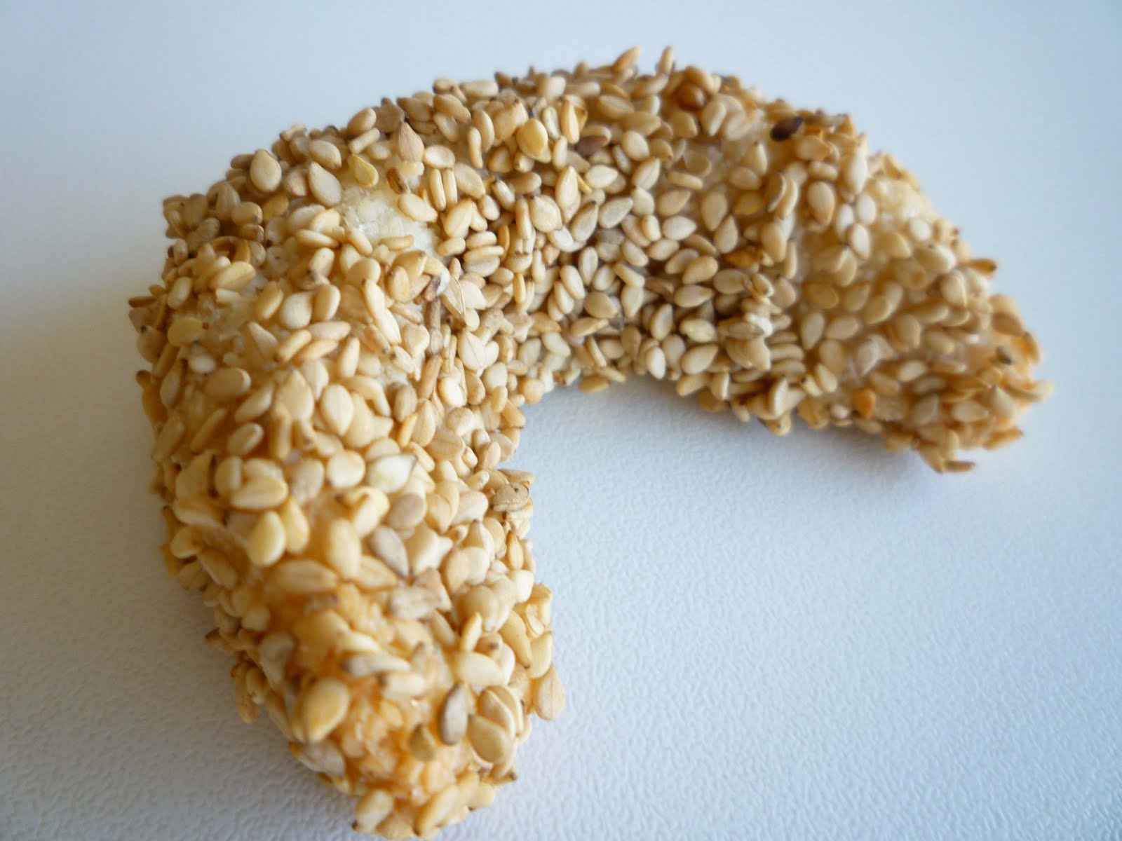 Mixare le mandorle con lo zucchero, la cannela e infine inserire il burro fuso. Lavorare la pasta e creare dei piccoli filoncini a cui dare la forma di mezza luna. Passarli nell’albume e poi nei semi di sesamo. Infornare a 150° per 15 min. Buonissimi! Grazie Nadji :-))